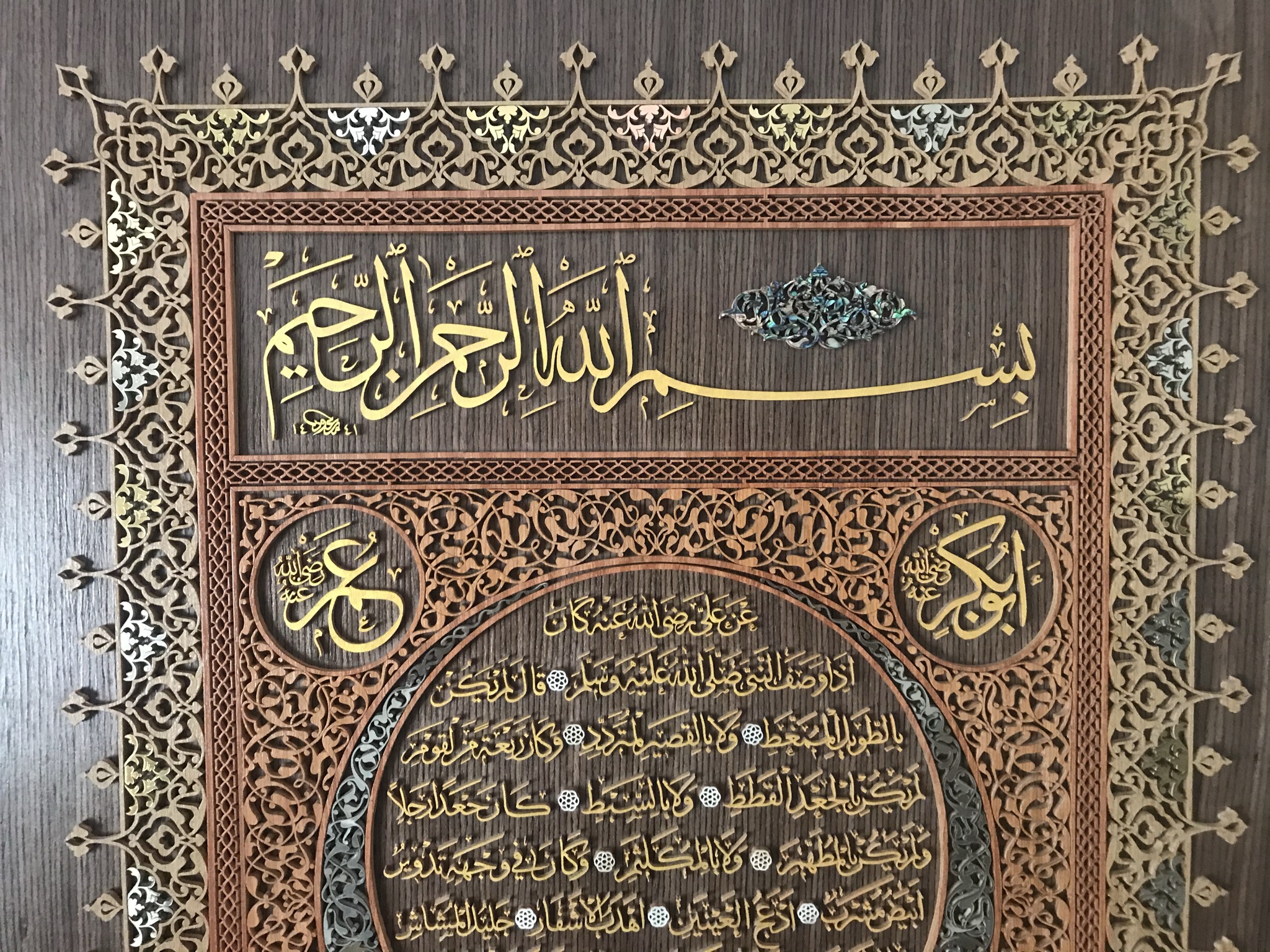 Hilye-i Şerif çalışması, bir buçuk seneyi aşan bir süre içerisinde 3.000 saatlik bir çalışma sonucu ortaya çıkmıştır.